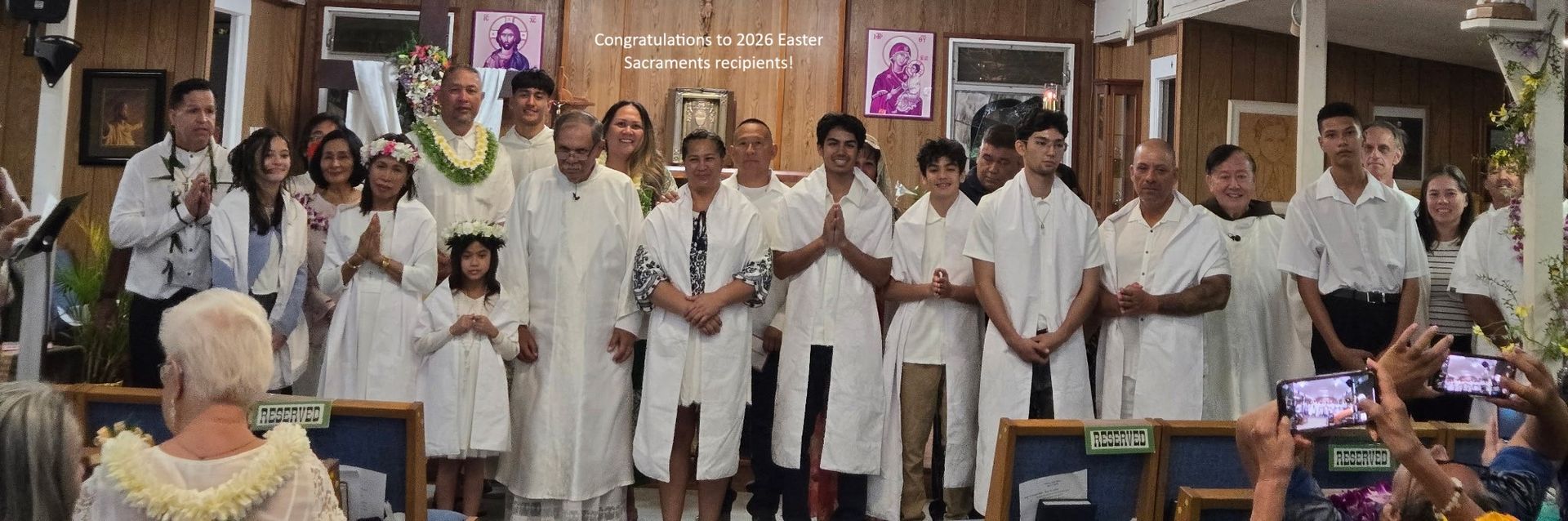 As a fast growing rural parish with a large Hawaiian population we feel a special calling to stand together in truth and justice for the rights of the first people (kanaka maoli) of this land. As part of the universal Church, our outreach extends beyond our boundaries to the global community and we affirm the human dignity of all peoples.